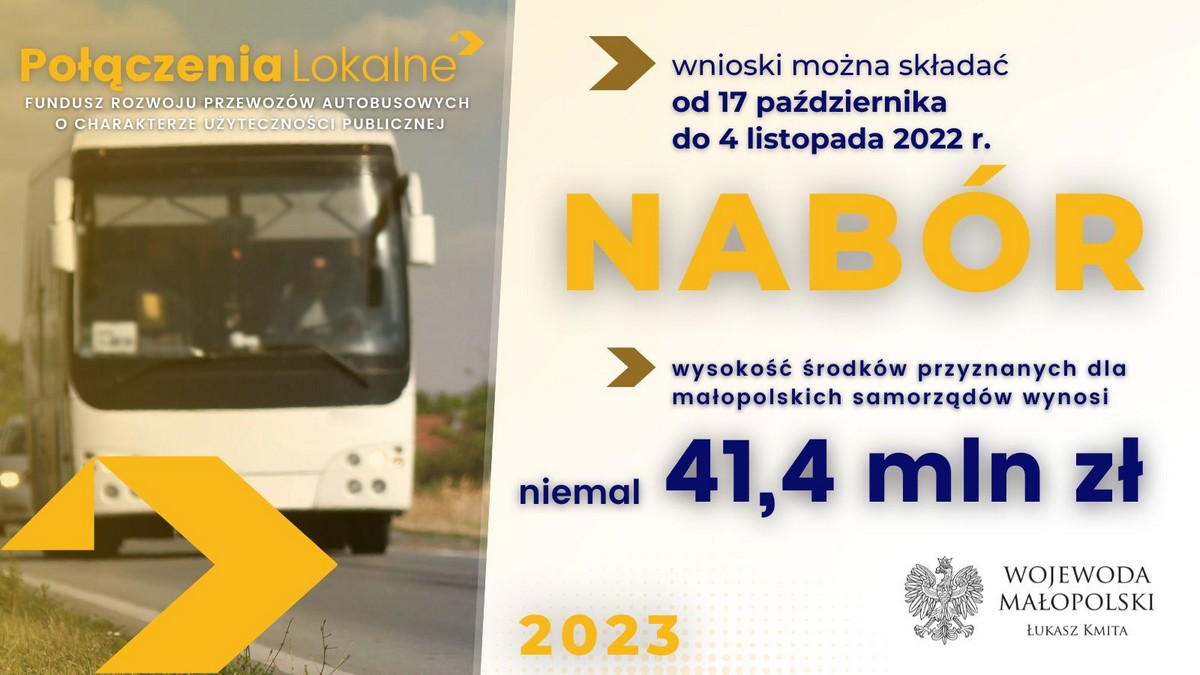 17 października 2022 roku ruszył nabór wniosków na pozyskanie środków z Funduszu Rozwoju Przewozów Autobusowych o charakterze użyteczności publicznej. Nabór dotyczy dofinansowania linii na rok 2023. Wnioski można składać do 4 listopada 2022 roku. Do podziału w Małopolsce jest kwota blisko 41,4 mln zł. Kwota dopłaty do deficytu pojedynczej linii komunikacyjnej w przewozach autobusowych o charakterze użyteczności publicznej wynosi 3 zł/wozokilometr przewozu.