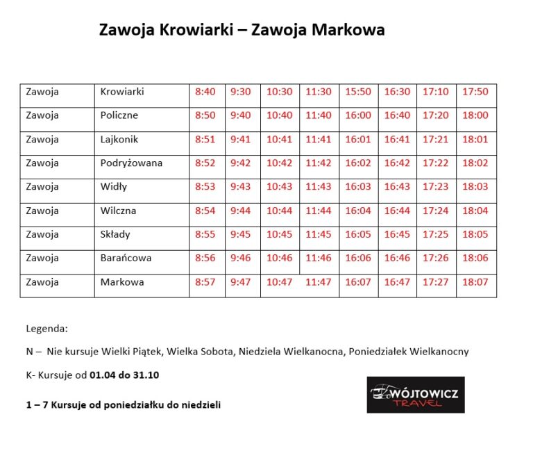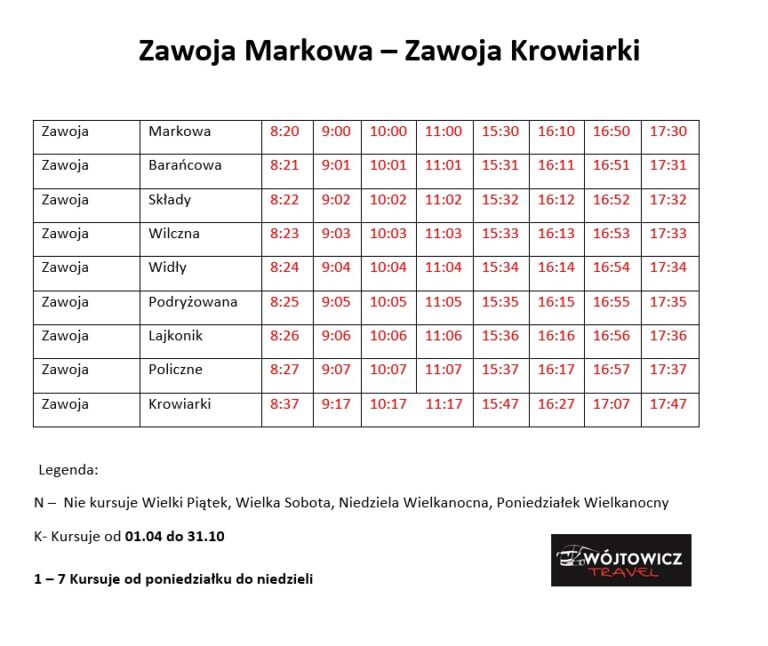 Rozkład Jazdy BUS Zawoja Krowiarki – Zawoja Markowa