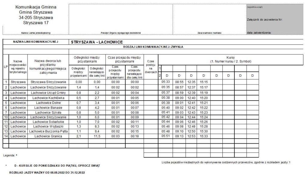 Poniżej prezentujemy aktualne rozkłady jazdy na wszystkich liniach gminnych w Gminie Stryszawa: